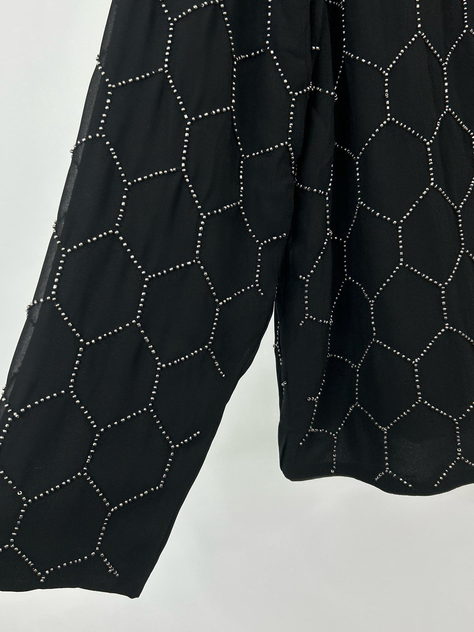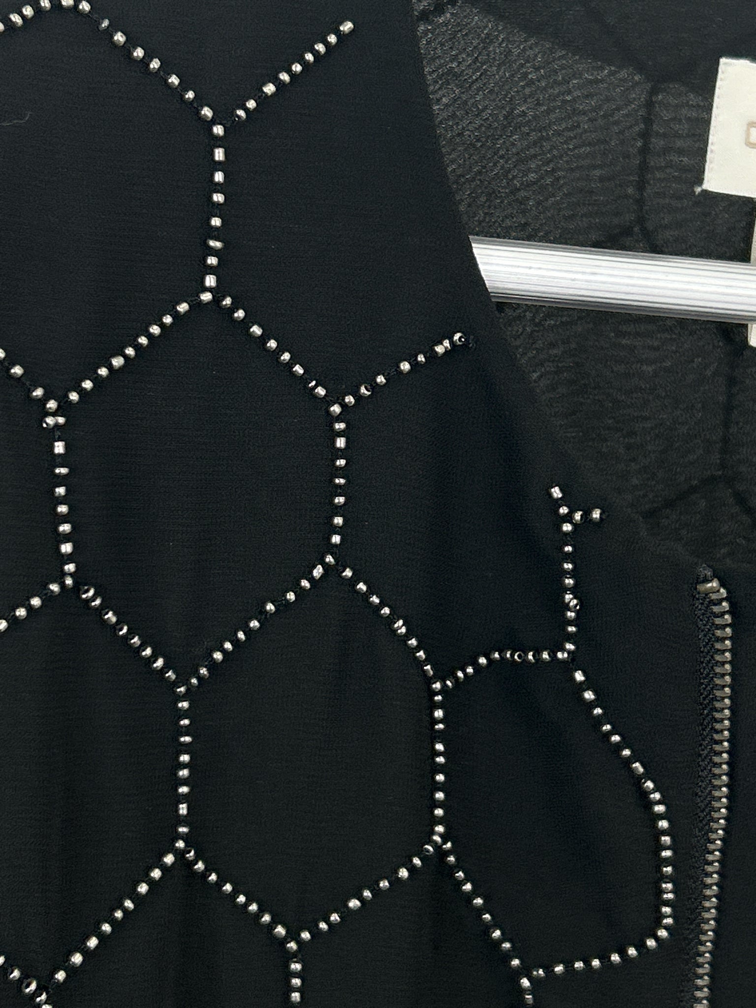 NWT $139. Chico's size 2. Beaded Bomber Jacket. Rounded neckline. Zip front. Long sleeves. Lined. Shell and lining: 100% polyester.