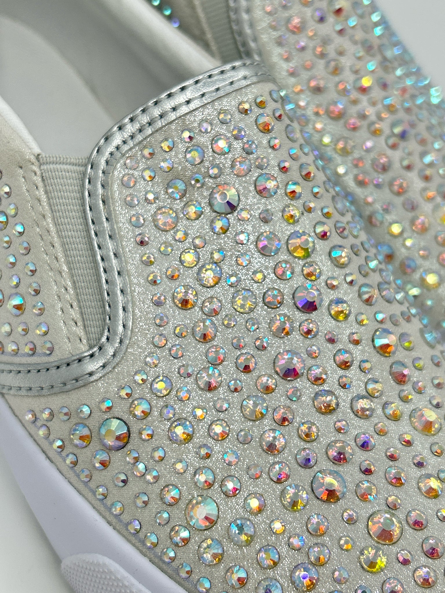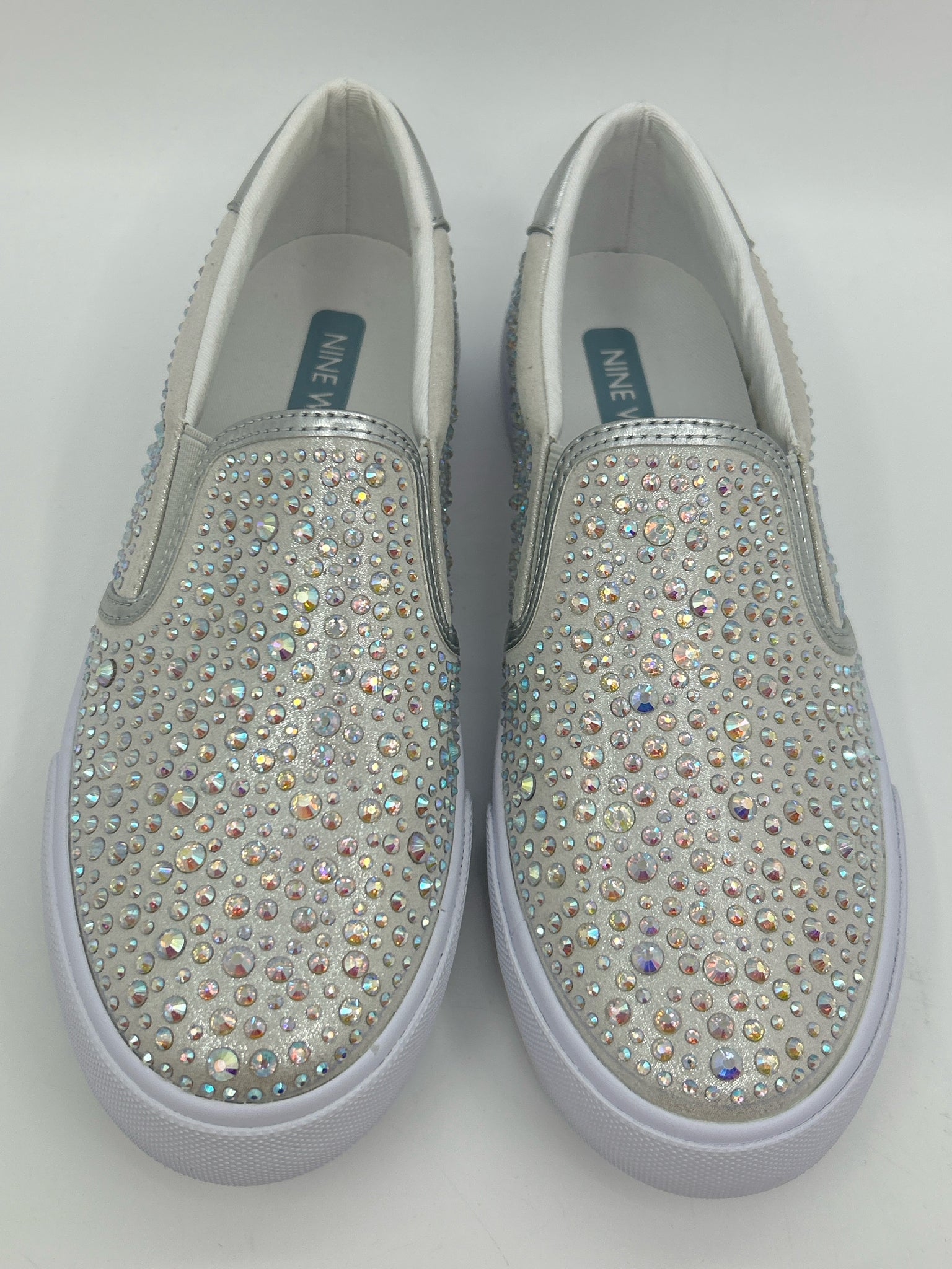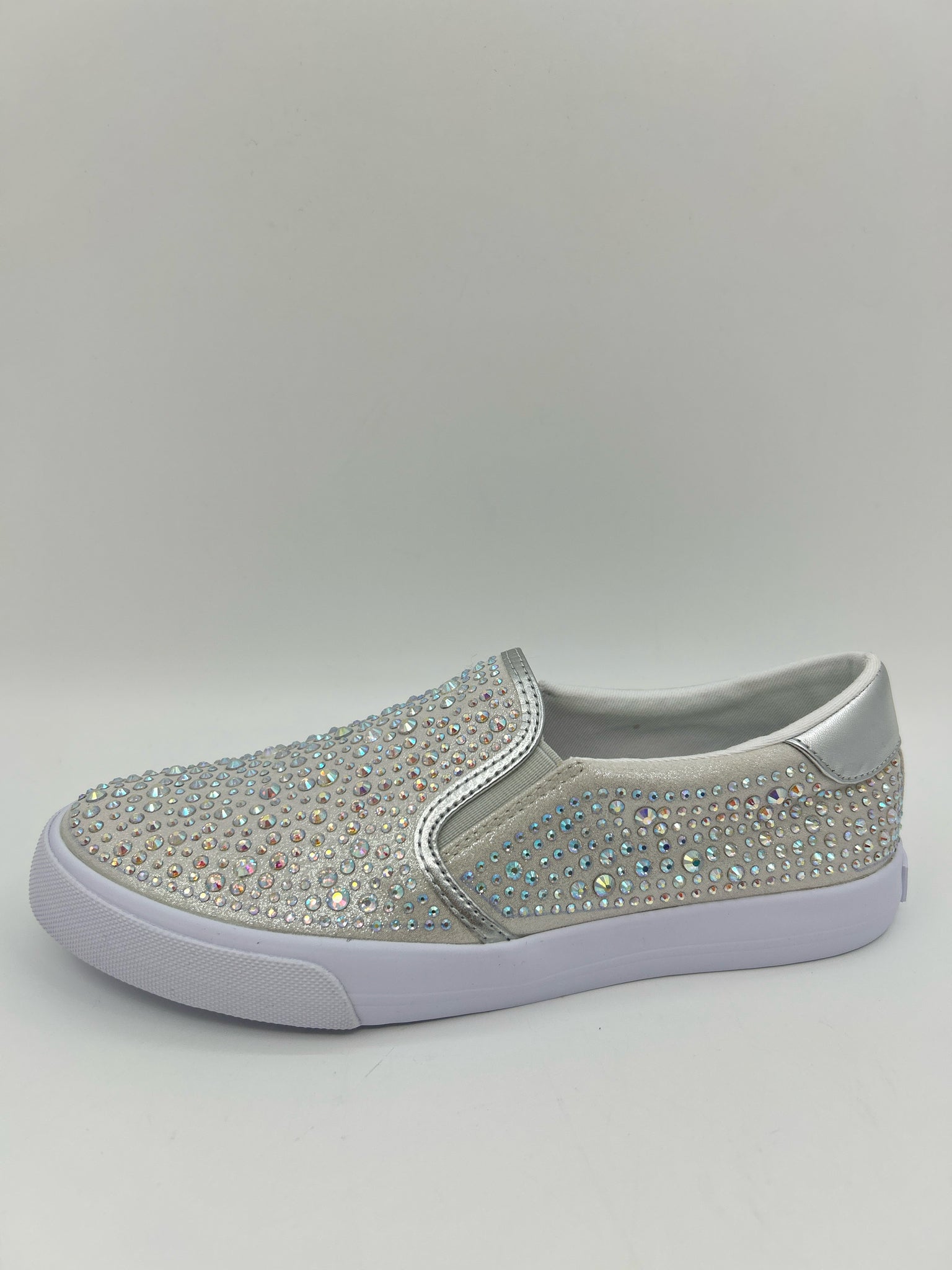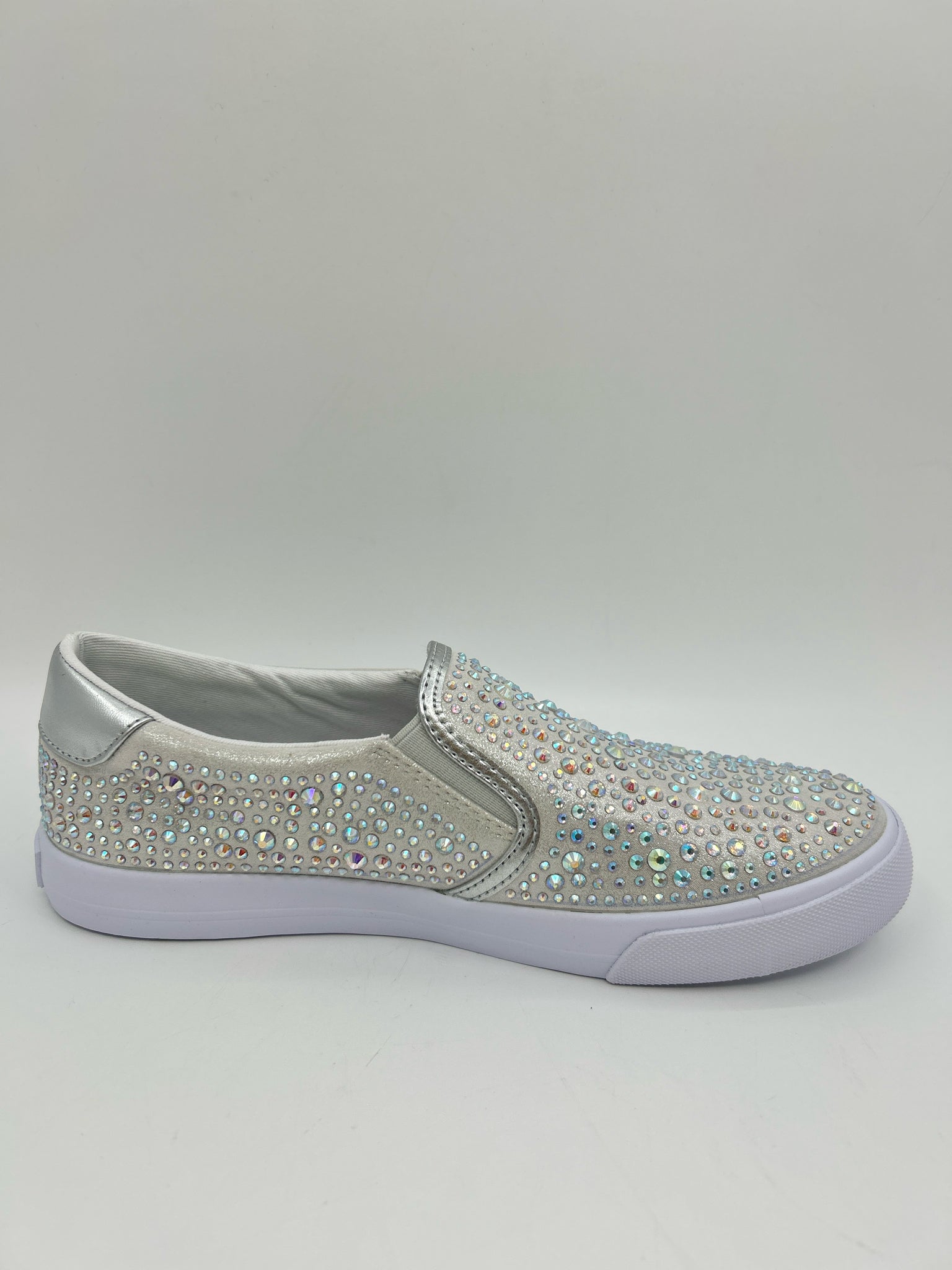 NIB LALA11. Slip on. Fabric upper with crystal studs. Elastic gore. Fabric lining/insole. Rubber outsole.