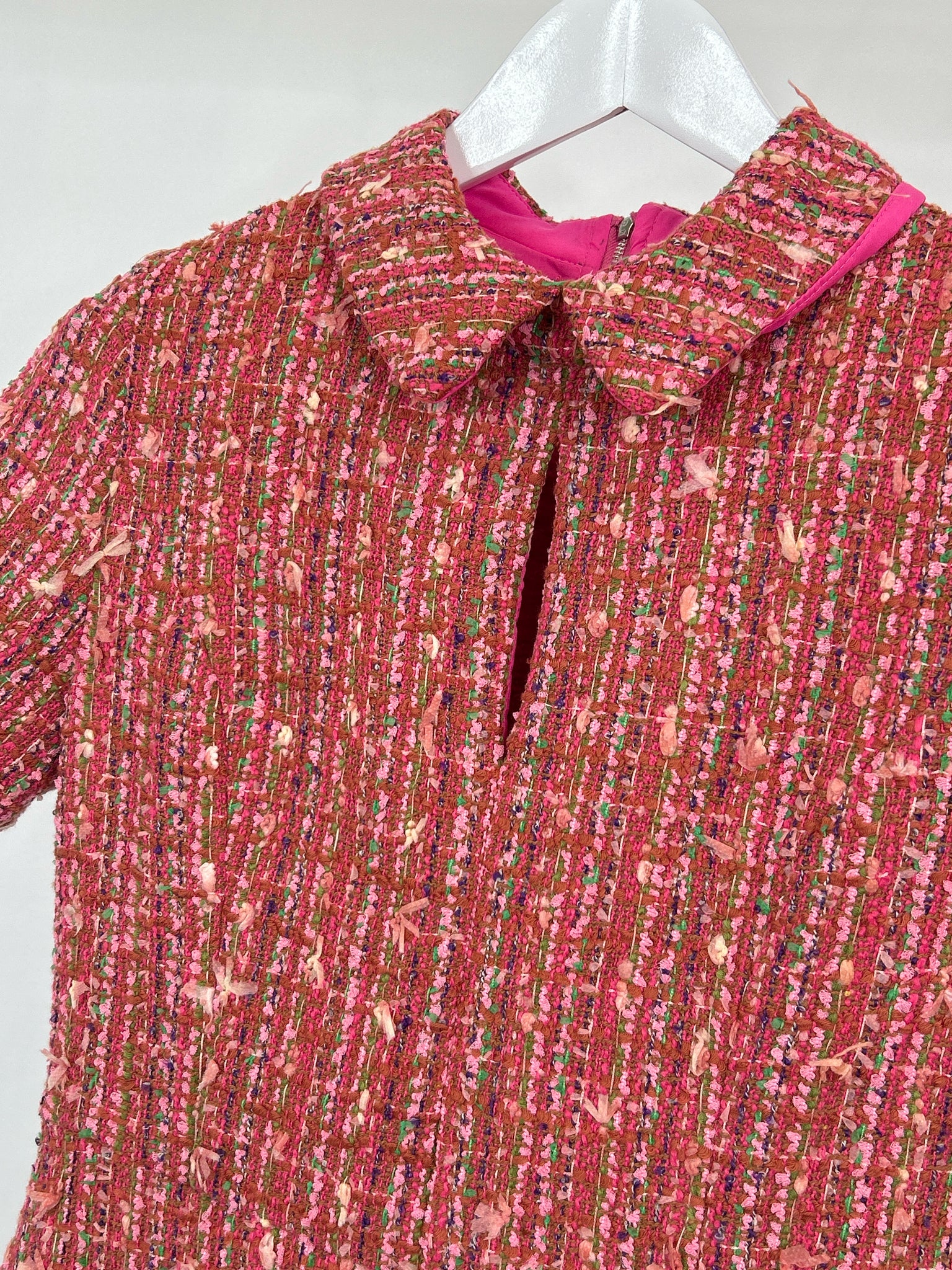 NWT. Tweed sheath. Collar. Keyhole front. Short sleeve. Back zipper. Pleated hem. Lined. 100% polyester. Hand wash.